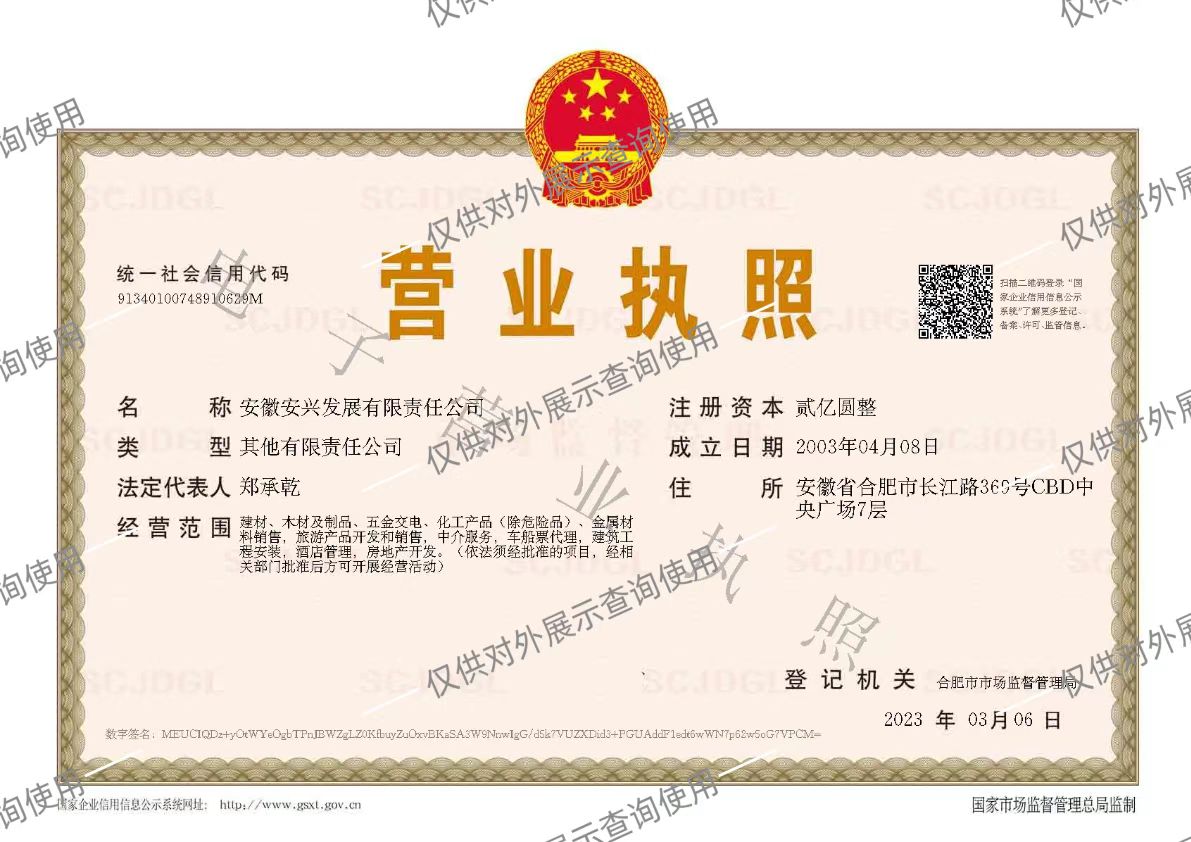 ABOUT US 公司簡(jiǎn)介 安徽安興發(fā)展有限責(zé)任公司(以下簡(jiǎn)稱(chēng)“發(fā)展公司”)是經(jīng)安徽省經(jīng)貿(mào)委批準(zhǔn),由安徽安興聯(lián)合總公司所屬安徽省安興房地產(chǎn)開(kāi)發(fā)公司及安徽安鑫旅游有限公司重組改制,于2003年2月正式成立,原名“安徽安興發(fā)展股份有限公司”。 發(fā)展公司歷經(jīng)2007年和2013年兩次股改,注冊(cè)資本由期初3000萬(wàn)元人民幣增至20000萬(wàn)元人民幣,由國(guó)有股、社會(huì)法人...